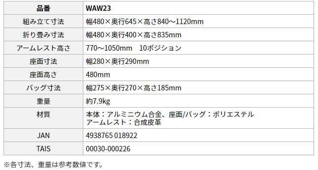[使用時サイズ] 幅46×奥行52×高74~86.5cm(6段階調節)